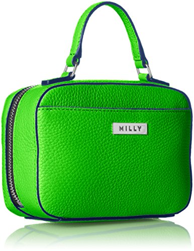 Astor mini satchel. Crafted in pebble leather. Zip around closure. Front zipper pocket with signature MILLY hardware. Back pocket. Interior: one zip pocket and credit card slide pockets. Fully lined.Feature