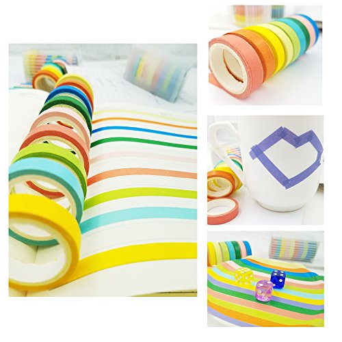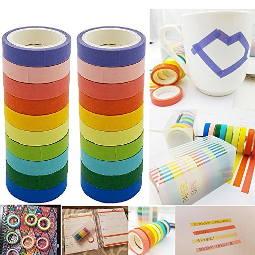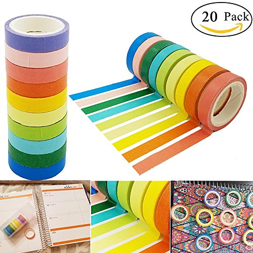 SACKORANGE Washi Tape, Decorative Diy Tape Washi Rainbow Candy Color Sticky Paper Masking Adhesive Tape Scrapbooking and Phone Diy Decoration, 20 Rolls