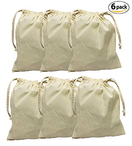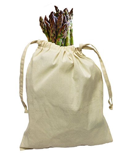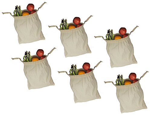 Earthwise Organic Cotton Muslin Produce Bags with Drawstring for Grocery Shopping and Storing , Bulk Foods, Nuts, Grains, Spices Storage & Organizing 11.5" x 13.5" ( Set of 6 )
