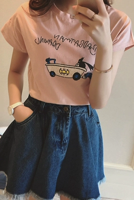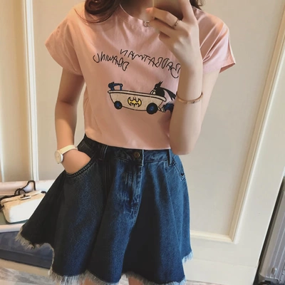 韩系宽松休闲百搭圆领卡通字母短袖t恤女打底衫夏