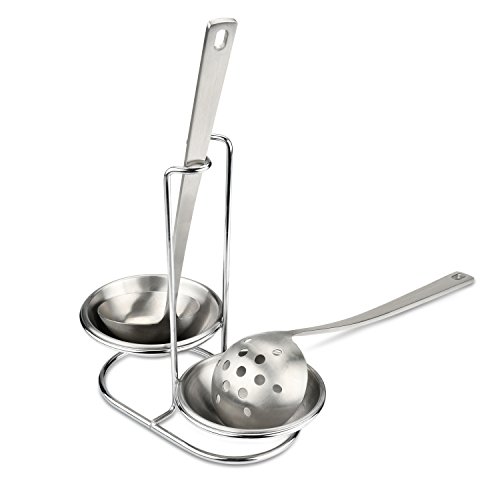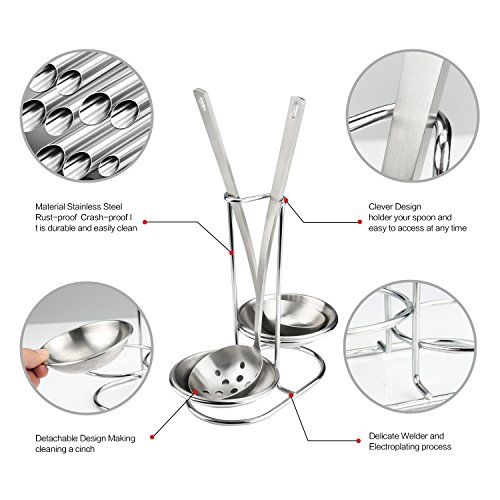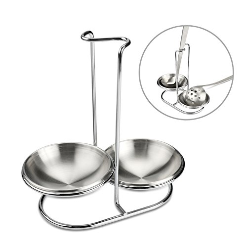Stainless Steel Spoon Rest Holder,Long Handle Vertical SPAC Saving Soup Ladles Holders, Ladle Rest Soup Ladle Holder Silver (double)