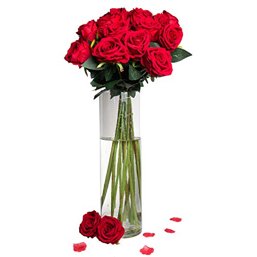 Artificial Silk Roses Red Velvet 30” Long Stemmed, 1 Dozen Fake Flowers for Bouquets, Weddings, Valentines By Royal Imports