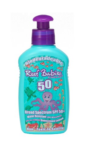 Pediatrician Approved Hypoallergenic!. UVA - UVB Protection. Waterproof up to 80 minutes. Biodegrades in Oceans, Lakes and Rivers. Non-toxic to Sealife. Bait Safe ~ Won't Kill or Contaminate your live bait! Specially formulated with our custom botanical blend that also contains Aloe Vera and Algae Extract (Hawaiian Seaplant). While this botanical blend is in most of the Reef Safe formulations, the Reef Babies formula has extra botanicals, plus added amounts of Aloe and Algae Extract for further anti-inflammatory properties. Additionally, Allantoin, a plant derived skin soother, was added to help sooth and protect your babies sensitive skin. Reef Babies provides broad spectrum protection, waterproofing up to 80 minutes of sun/water exposure before having to re-apply, and at the same time being rub-resistant (won't towel-off) during activities; all while remaining biodegradeable in oceans, lakes and rivers. highly recommend that all sensitive skin types apply a small test patch prior to total body application. If irritation develops please discontinue use. Do not use on infants under 6 months of age without consulting a physician.Feature