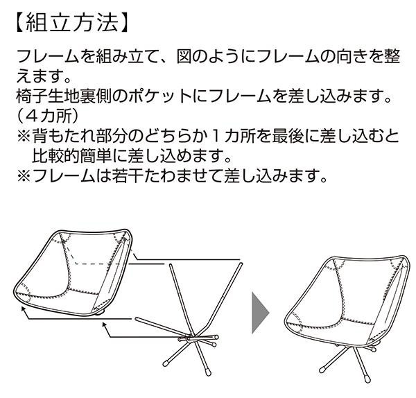 | 組立式で座面のお手入れもできるコンパクトチェア!!収納もコンパクトで持ち運びしやすい収納ケース付きです。 |