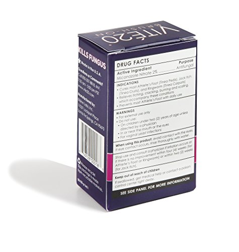 Studio : Vite20 Publisher : Vite20 Binding : Health and Beauty Product Description rush On Vite20 Antifungal Kills Fungus 0.5oz/ 15ml Active Ingredient: Miconazoie Nitrate 2%, Purpose: Antifungal Cures most Athlete's Foot(Tinea Pedis). Jock Itch(Tinea Cruris). and Ringworm(Tinea Corporis) Rellieves itching, cracking, burning and scaling, which accompany these conditions. Prevent most Athlete's Foot With Daily use About the Product: Easy to apply See Results in just weeks No need to remove nail polish Infused with Tea Tree Oil Lavender Oil 0