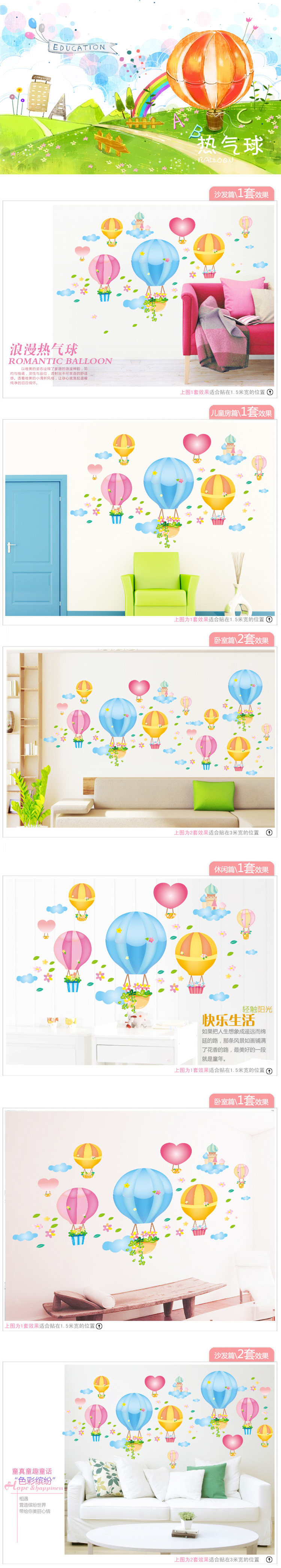 可移除墙贴纸 热气球 墙纸贴画温馨卧室儿童房教室布置幼儿园贴花