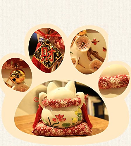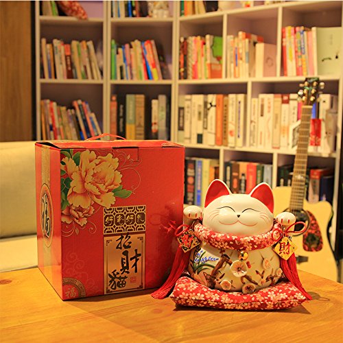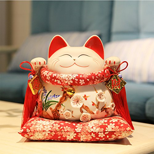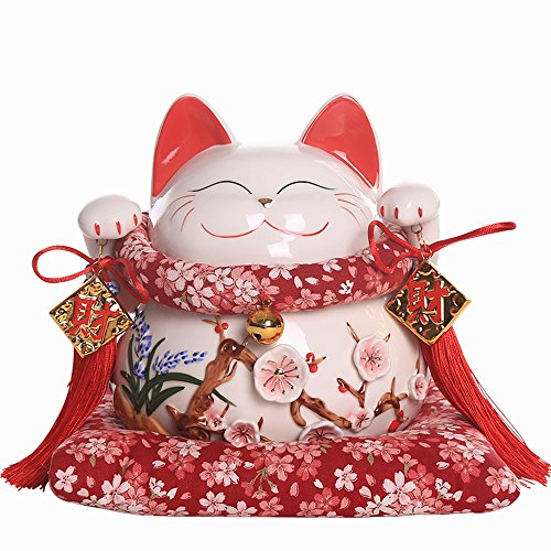 Large Size Ceramic Thriving Business Maneki Neko Lucky Cat(Beckoning Cat) Piggy Bank,Best Gift for Business Opening ,Feng Shui Decor Attract Wealth and Good Luck
