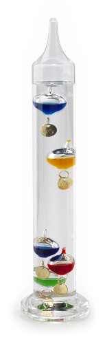 Galileo Thermometer 11 inch Tall with 5 Multi Colored Spheres and Gold Plated Tags in Fahrenheit. By Lily's Home