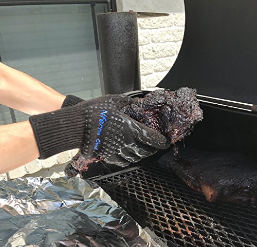 Heat Resistant Cooking Gloves for BBQ, Grilling or Baking by Nferno Chef | Made with Aramid Kevlar Fibers for Protection to 932°F, Coated with Protective Silicone and Lined with Cotton (Black Pair)