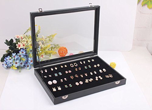 -. Title : Elife Black Velvet 120 Holes Necklace Earring Ring Jewelry Organizer Tray Showcase with Cover