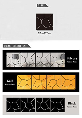 -. Feature : 1:Size:L*W/20*20CM/8''*8'',Package include:4 Sets(1set=7 x Mirror Decors) / 2:A contemporary way to complete your home or room interior design. / 3:Weight:170g,Thickness:0.11MM.Don't need extra glue,the package including it. / 4:Waterproof and environmental acrylic materials,beauty decoration for your home,bedroom,etc. / 5:This wall sticker fit for any smooth,flat,dry and dust free area,you can decorate bedroom,living room,office,etc.