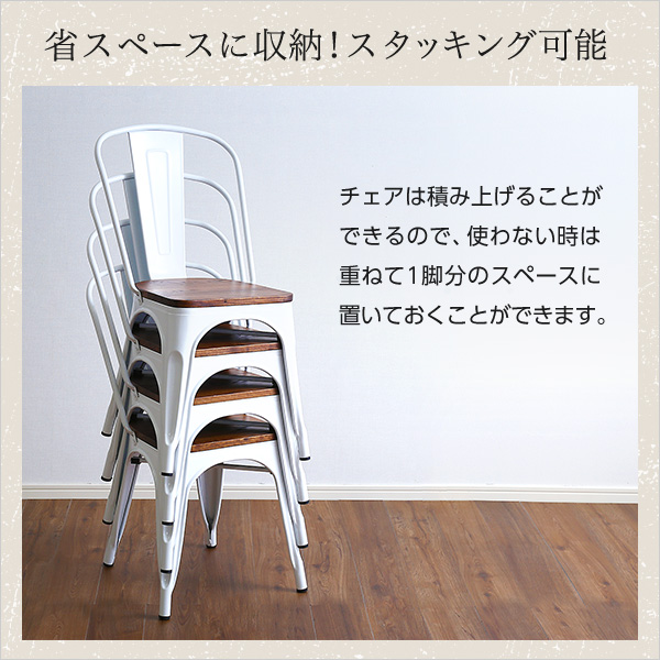 ●ヴィンテージ・ダイニングチェア2脚セット(金属製)スタッキング可能、完成品Porian-ポリアン-