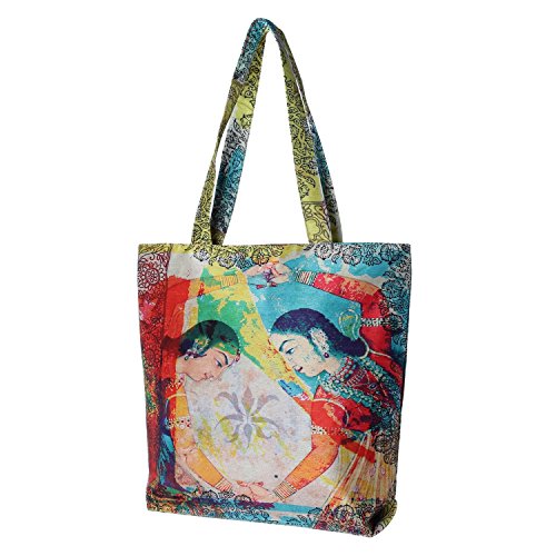 Digitally Printed Tote Fashion Shopping Hand Bag Multipurpose Waterproof Faux Silk and Polysatin Lining 16X14X4 Inch