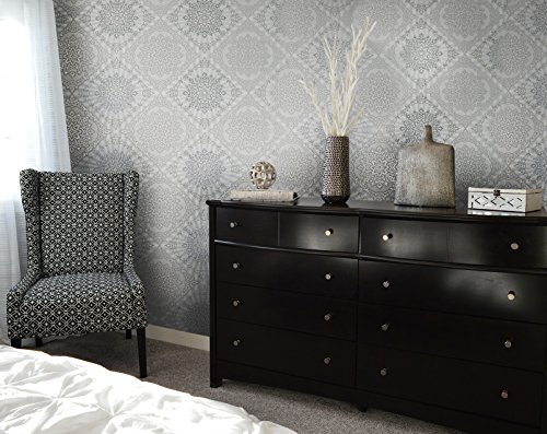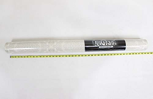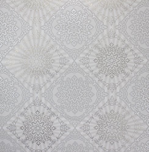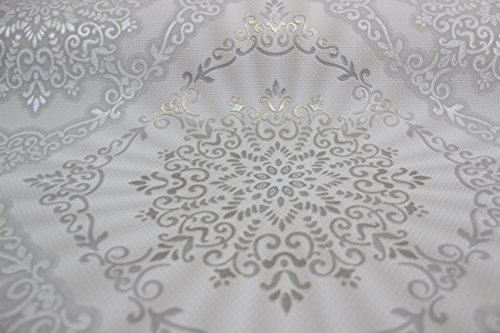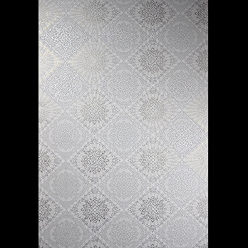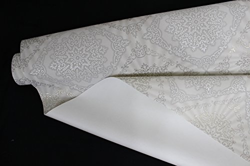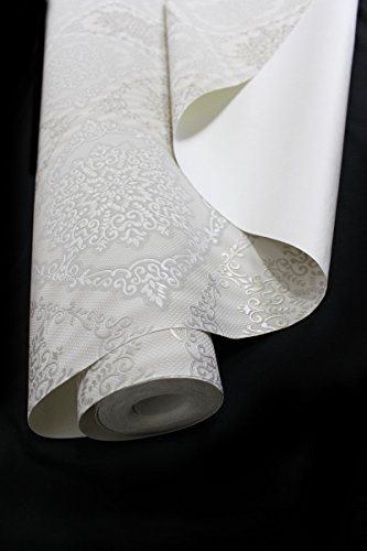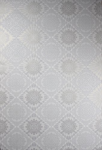 -. Title : QUADRUPLE ROLL 113.52sq.ft (4 single rolls size) European Slavyanski wallcovering washable tile victorian pattern Vinyl Non-Woven Wallpaper white gray silver textured wall modern glitters metallic 3D