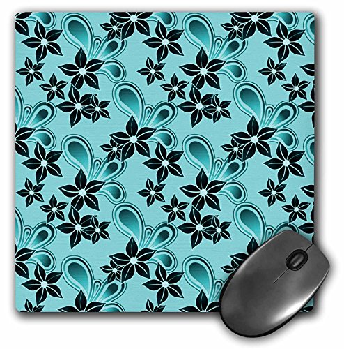 3dRose LLC 8 x 8 x 0.25 Inches Mouse Pad, Pretty Deep Turquoise Flowers on A Flourish on A Light Blue Background (mp_77823_1)