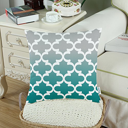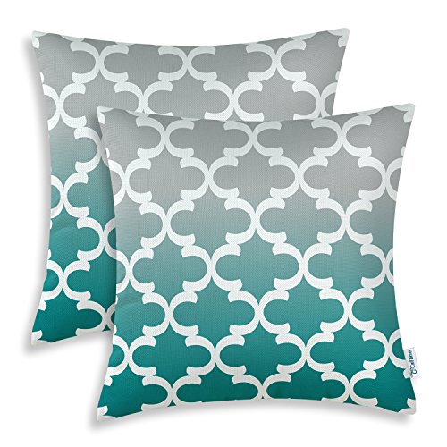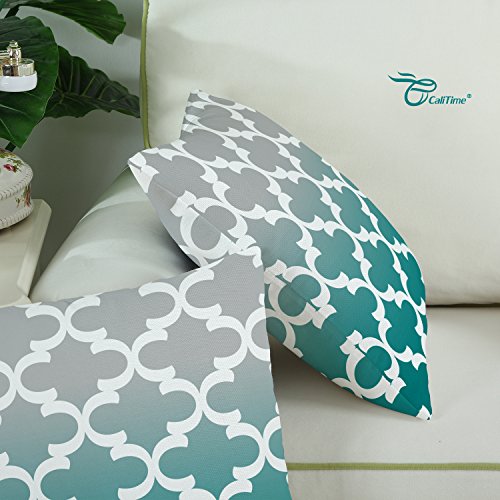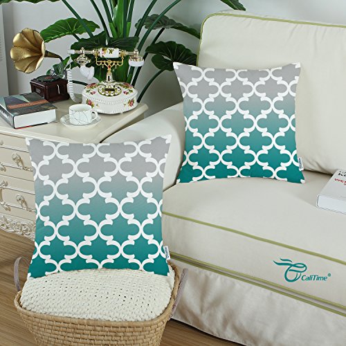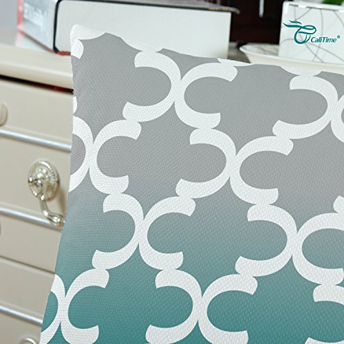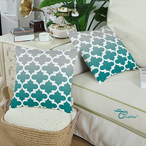 Pack of 2 CaliTime Cushion Covers Throw Pillow Cases Shells Both Sides, Gradient Quatrefoil Accent Geometric, 18 X 18 Inches, Gray/Teal