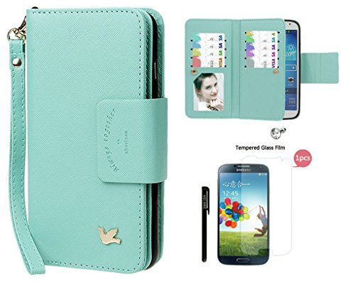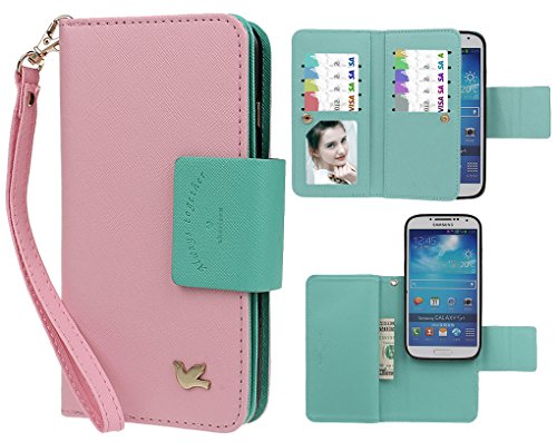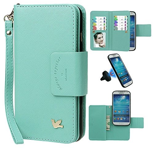 Samsung S4 Case, xhorizon TM FLK Premium Leather Folio Case [Wallet] [Magnetic Detachable] Wristlet Purse Flip Multiple Card Slots Bird Case Cover for Samsung Galaxy S4 i9500 (Navy)