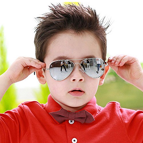 -. Feature : plastic frame / mirrored lens / Lens width: 50mm, Lens height: 42mm / Bridge: 18mm Arm: 120mm / Best gift for your lovely baby in summer day
