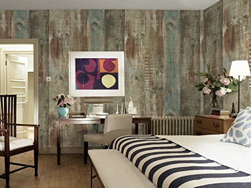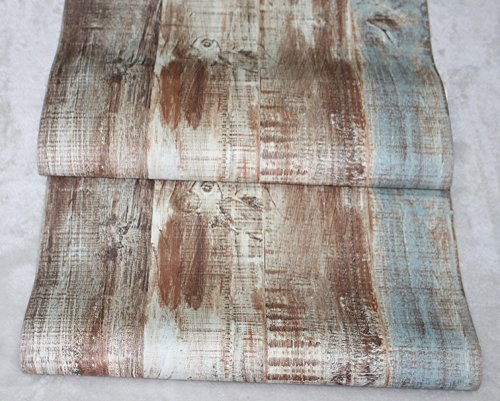 HaokHome 8032 Vintage Woods Panel Wallpaper Rolls Blue/Brown Trees Vinyl Kitchen Wall Paper Murals Barnwood Home Decoration 20.8" x 393.7"