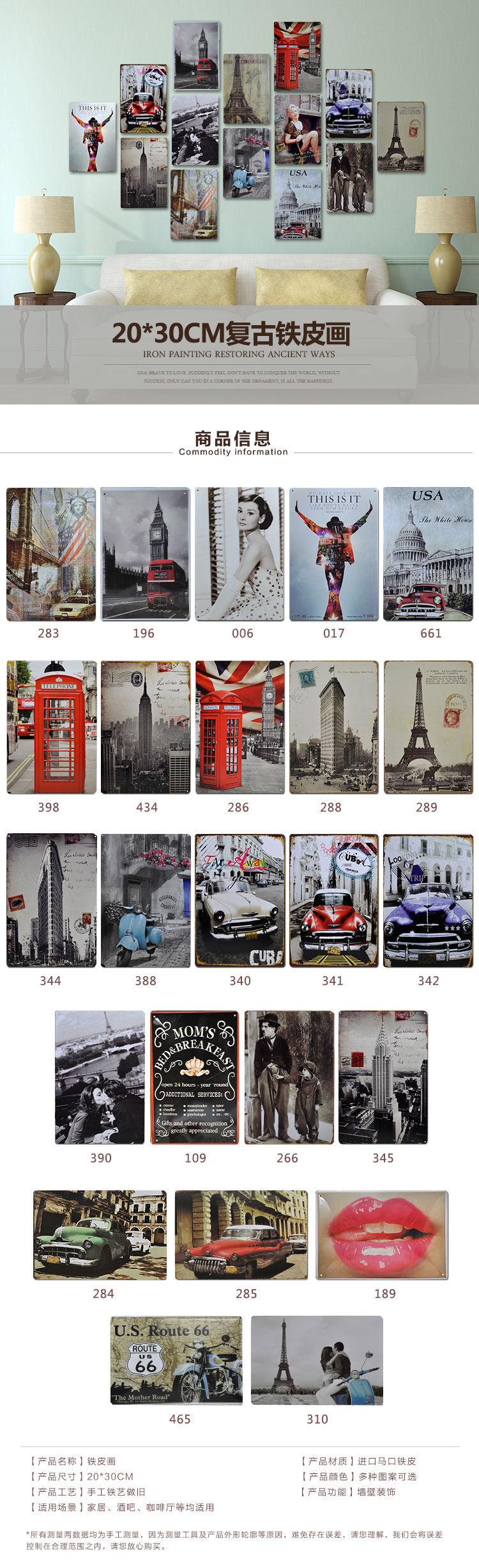 复古怀旧铁皮画车牌卧室挂件餐厅墙面酒吧创意墙饰房间墙上装饰品