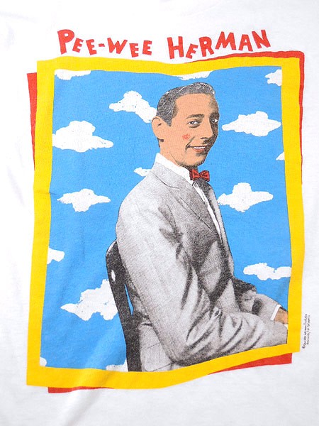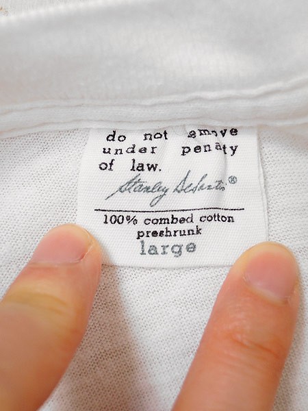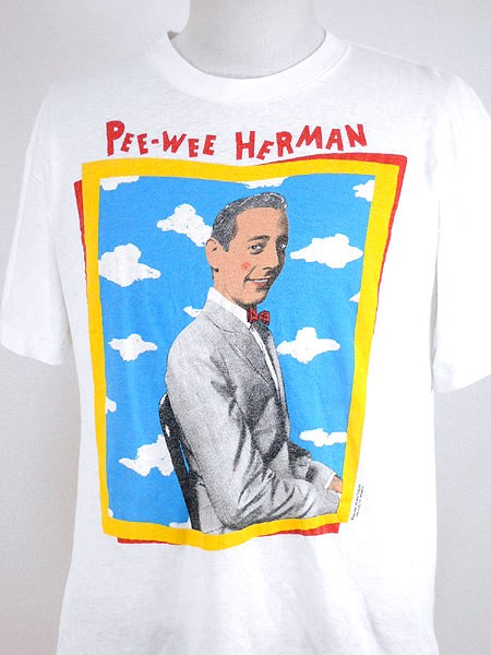 Mens ブランドStanley DeSantis カラー白 メール便可 コンディション★★★ 素材コットン 表記サイズL スタッフコメント当時、日本の証券会社のCMにも起用された世界的に有名なキャラクター「ピーウィー・ハーマン」。 ※ 若干の脇シミ 実寸サイズ 着丈 67 cm 身幅 49 cm 肩幅 49 cm 袖丈 18 cm ※ウエスト・ヒップ以外は平置き採寸【code】#d