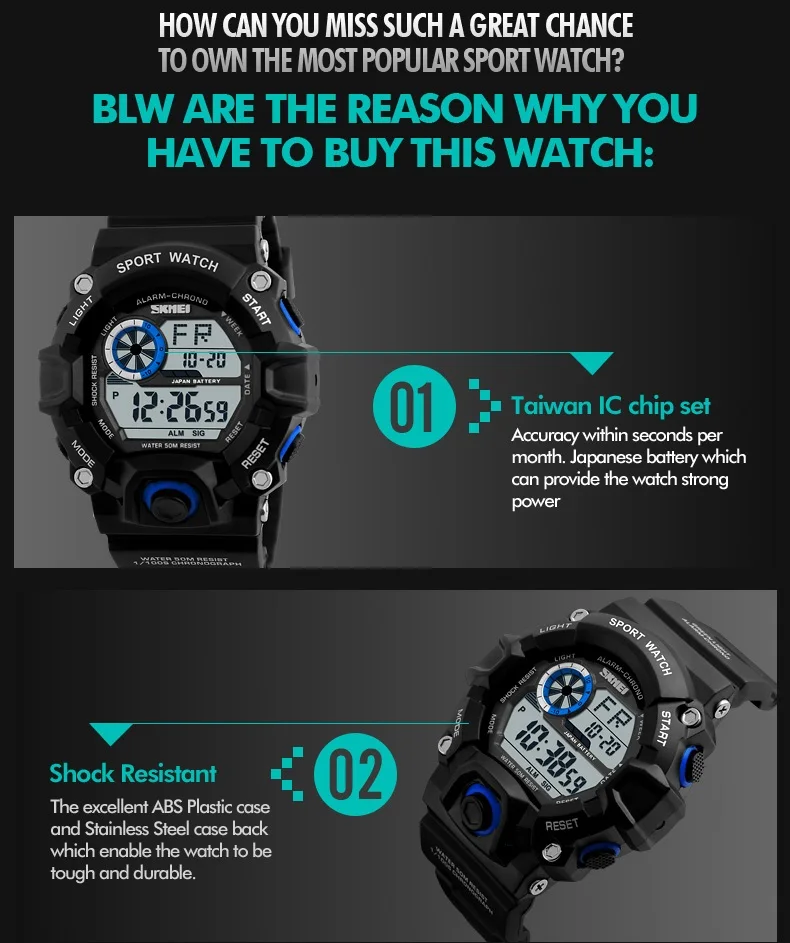 Feature:Water Resistant,LED display,Auto Date,Complete Calendar,Shock Resistant,Alarm,Chronograph