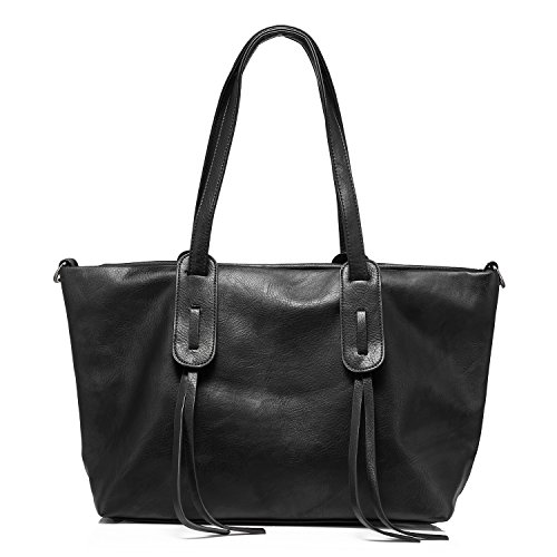 -. Feature : ★ DECENT DESIGNS - Double handles.One more wide shoulder strap,help to reduce the pressure on your shoulders.The bottom with extra leather sheet to protect the bag from being worn / ★ LARGE CAPACITY - Top with zipper closure.The inside has 1 main compartments,2 zippered pockets,2 slot pockets.Back with a zipper pocket,quick and easy access to reach small items.Roomy enough to hold all your daily stuff,such as books,iPad,sunglasses,kindle,make-ups and so on / ★ TONS OF CARRYING - You can use it as a handbag/tote,or shoulder/cross body bag.It is a perfect choice to carry with when hanging out or traveling / ★ DURABLE MATERIAL - High quality synthetic leather with fabric lining and careful stitching / ★ DIMENSION - Handbag Size :14.4"x10.8"x5.3"(W X H X D) Handle Height:9.4" Shoulder Strap Length:37"