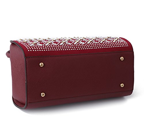 -. Brand : Satispac -. Department : womens -. Feature : Shining Geometric Design with Suede and Synthetic Leather Handbag / Crystal Jewel Ball Clam Top and Frame Clasp Closure / Size: L 12.5" x W 11" x H 6.5 " / Zipper Closure with 1 Small Inside and Outside Pocket and 1 More Inside Pockets / Detachable Shoulder Strap -. Model : DS-8314 -. ProductGroup : Shoes -. ProductTypeName : HANDBAG -. Title : Satispac Women's Shine Rhinestones Grid Design Handbag