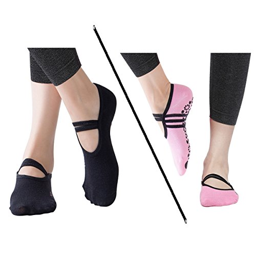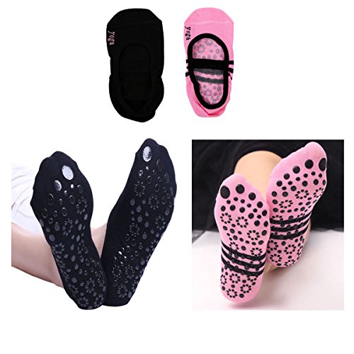 -. Title : Pingmall 2 Pairs Yoga Socks with Grips Non Slip Cotton for Women Pilates Barre Workout