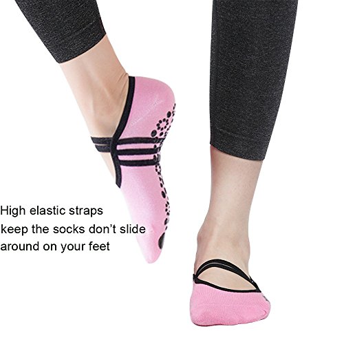 -. Feature : PREMIUM MATERIAL - Combed cotton(80%) and spandex(20%). High elastic,moisture wicking,soft and breathable.Keeps your feet dry and healthy,and elastane. / ERGONOMIC DESIGN - The socks designed to reflect the pressure applied to your feet,and with straps on the top,they don't slide around on your feet. Wear them for an effortlessly stylish,ensures maximum comfort through prolonged wear. / NON SLIP SOLE AND MASSAGE FEET - The socks have gripper sole,that use environmentally PVC pattern extends fully from heel to toes,prevents sliding your feet.Grip distribute according to foot force point(different for left and right socks),massage your feet to improve blood circulation and relief fatigue. / ANTI ODOR AND ANTI BACTERIA - Protect your feet from unwanted dirt and germs.Good use for yoga,pilates,bikram yoga,barre and ballet dance. Also perfect for home,gym,travel,studio and hospital use. / FIT US women's shoe size 5-8. LIFETIME WARRANTY - If the size not fit or any other reasons not satisfy, we will full refund your purchase.