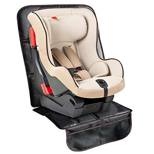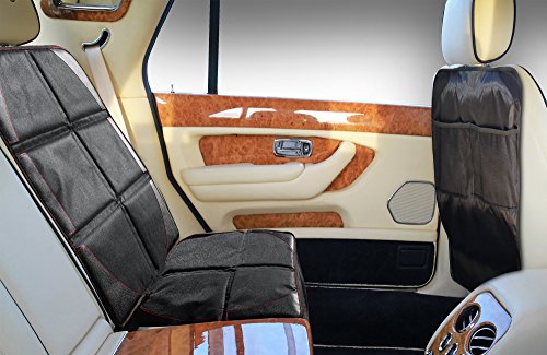 - Feature : PROTECT THE ENTIRE CAR BACKSEAT - This back seat protector and car kick mat combo pack gives parents everything you need to keep your car interior clean! For the back side of the front seat, you get the largest car seat kick mat at a 27 inch by 20 inch size. These protectors cover 10% more of your car seats as compared to some other brands. The DUAL-SIDED kick mats has ADDITIONAL POCKETS on BOTH SIDES, and the toddler car seat protector is used protect your seats from damage, spills and crumbs! / CONVENIENT KICK MAT ORGANIZER - The back of seat car protector fits onto the headrest with durable straps and keeps your toddlers dirty shoes off your car seats. Our car seat back protector also acts as an auto seat back organizer with storage pockets on both sides to hold kids goodies. On the back is bigger pockets to hold bigger items like an Ipad / tablet that can be stored out of sight from prying eyes through the car window. / UNIVERSAL VEHICLE BABY SEAT PROTECTOR - The universal back seat protector mat is used to cover and place UNDER ANY baby / infant or high back booster seat! Pockets at the bottom makes the cover also a great seat organizer for stowing small items. Thick padding material for the horizontal bottom lays flat on the seat and extends for a generous amount of space around the seat to fit any ultra large child car seat! A flap is used that tucks into the seat to help hold it in place. / DURABLE AND TUFF DESIGN - Our car seat kick mat and the child car seat protector combo is the absolute BEST VALUE on Amazon! We construct them out of the absolute best water-resistant fabric to ensure that they last. The car seat protectors are even machine washable for easy care. The BABY SEAT PROTECTOR comes with SUPER GRIP VINYL; most other vehicle seat protectors are slippery, but not these! This super grip vinyl keeps the infant car seat in place and prevents it from slipping. / THE POPPYTOOTTOOT PROMISE - Both the car kick mats and car seat back protectors included in this set are backed by a LIFETIME NO-QUESTIONS-ASKED, MONEY-BACK GUARANTEE! If for any reason you're disappointed with either of the back seat car protectors, we'll replace them without any hassles! You can truly buy this baby seat protector and seat back protector combo pack without worry! This represents EXCLUSIVE VALUE that you don't want to miss out on.