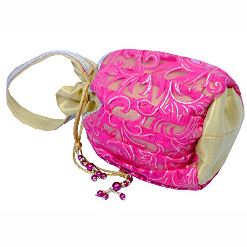 -. Brand : Maitri Creations -. Department : womens -. Feature : A stylish look to go with a variety of outfits / Simple, Classy and Sophisticated / Occasion: Perfect For Evening Party, Wedding, Ceremonies / Color: Pink / Do not expose to extreme heat and wipe with damp cloth -. ProductGroup : Shoes -. ProductTypeName : HANDBAG -. Title : Maitri Creations Women Traditional Silk Brocade Purse Potli Bag Drawstring Jewelry Pouch Bag Cotton Gift Bag Value Set Wristlet Beaded Handbag Wedding Evening Party Designer Bridal Clutch Pink