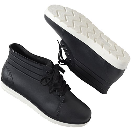 -. Feature : メイン素:PVCで完 全防水 / レインシューズなのにデザイン性を重視!ジーンズ、チノパン、スーツにも合わせられる大人カジュアルなスニーカータイプ! / 一体成型でつなぎ目がなくて、強力防水!!浸水する心配がありません / 靴底が高く安定感◯、ソールの凹凸加工で防滑性◯ / 靴紐タイプでサイズ感調整可能、柔らかくフィット感あり