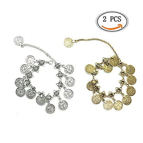 -. Title : IDS Vintage Style Antique Silver Anklet Coin Tassels Beach Ankle Chain, Fashion Boho Coin Anklet Bracelet for Women To Beach, Sliver, Gold, 2 Pcs