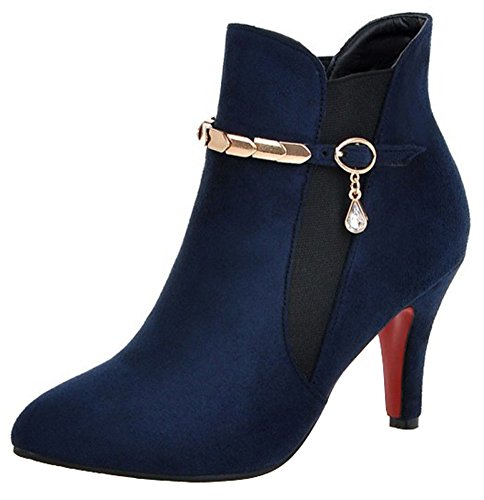 (Mofri)/Women's/Boots/DIRECT FROM USA/Mofri Women's Elegant Faux Fur Elastic Buckle Strap Pull on Ankle Booties Pointed Toe High Stil...