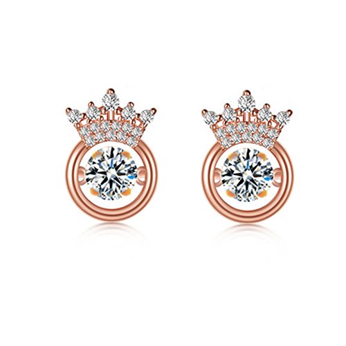 -. Title : CCANDTT ジルコニアピアス レディース 揺れるストーン ピアス シルバー925 キュービックジルコニア ダンシング CZダイヤモンド クラウン スタッドピアス 誕生日 記念日 クリスマス プレゼント(ピンクゴールド 仕上げ)