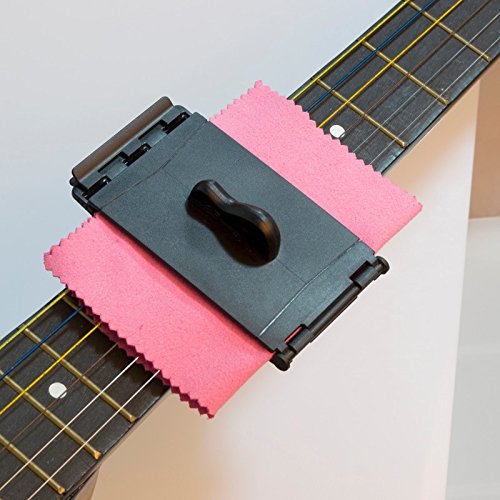 Product Description This guitar string cleaning tool is the perfect way to remove all the dirt and oil from your guitar strings. The device clamps onto your strings, and with just a couple of swipes up and down, cleans them like new. Works on all guitars, extending the life and preserving the tone of the guitar strings. The microfiber cleaning cloths are removable and washable. The string cleaner does not require any cleaning solution, and features fret ramps so there is no possibility of it damaging frets. Comes with a plastic case to keep the cloths clean when not in use. A must own for all guitarists! Please note that guitar string cleaner and cloth come in various colors--color shipped will be chosen at random. 0
