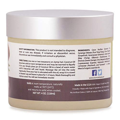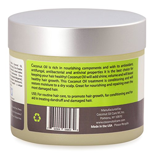 -. Binding : Misc. -. Brand : Coconut Oil Care -. EAN : 0760999998930 -. Feature : Transform your hair into more supple, soft, shiny and luxuriously healthy hair. Get ready for healthy, beautiful hair! You deserve it! / Great For All Hair Types! Prevent hair breakage, minimize and improve split ends / Stimulate hair regrowth getting deep into the follicles and promote scalp health such as moisturizing a dry scalp and anti-dandruff properties / Repair damaged hair - This deep conditioning treatment will nourish and moisturize dry and damaged hair / 100% Vegan / Cruelty Free / Planet Friendly / No Preservatives / 100% All Natural / Made in USA -. IsAdultProduct : 0 -. Label : Coconut Oil Care -. Manufacturer : Coconut Oil Care -. Model : 9893 -. MPN : B018IWSKT4 -. PackageQuantity : 1 -. PartNumber : B018IWSKT4 -. ProductGroup : Beauty -. ProductTypeName : BEAUTY -. Publisher : Coconut Oil Care -. Studio : Coconut Oil Care -. Title : Coconut Oil Care - Deep Conditioning Hair Treatment - Created with 100% Virgin Organic Coconut Oil and Infused with Intensely Effective Essential Oils - 4oz. -. UPC : 760999998930
