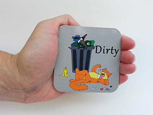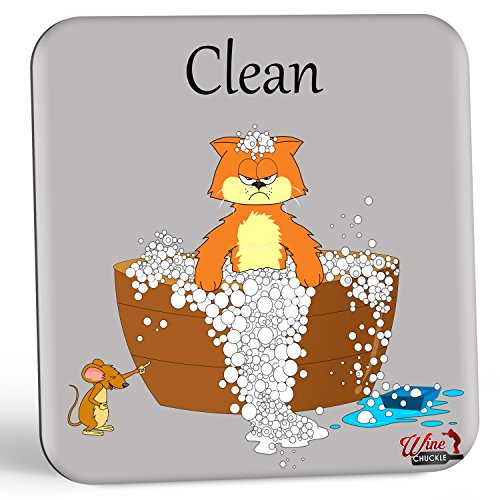 Wine Chuckle Cute Dish Kitty Clean Dirty Dishwasher Magnet Dishwasher Sign Indicator 3 x 3 Inches - 2 Sided Dishwasher Indicator Magnet for Cat Lovers to Eliminate Those Questionable Re-Washes