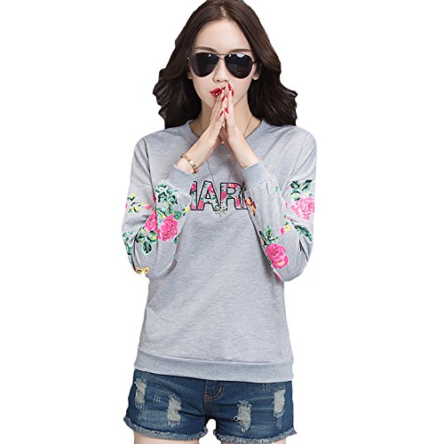 -. Feature : 胸元の英字プリントと袖に入ったフラワープリントがとってもオシャレ。袖口は伸縮性に優れたリブ編みです。綺麗で着やすい仕上がりになっています。 / シンプルな丸襟は、ゆったりして着心地抜群です。上質な素材で、伸縮性があり、色落ちしにくい、毛玉できにくい、文句なしの快適な着心地です。 / デート、旅行、お出かけ、1枚で着るのはもちろんジャケット コートを羽織るのもOK!ミニスカート ロングスカート デニム ワイドパンツ ガウチョパンツ クロップドパンツとボトムスを選ばないので1枚持っておくと便利なアイテム! / 適当の厚み、ゆったりで、1年中季節を問わずに愛用出来る。長時間着ても型くずれしません。 / サイズ M:肩幅61 バスト108 総丈63 袖丈48 L肩幅62 バスト112 総丈64 袖長48.5 XL肩幅63 バスト116 総丈65 袖長49 XXL肩幅64 バスト120 総丈66 袖長49.5