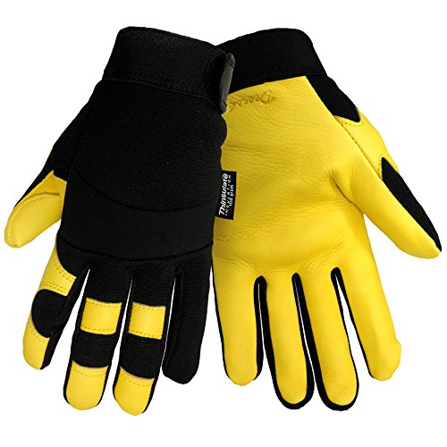 Studio : Global Glove Publisher : Global Glove Binding : Misc. Product Description Global Glove Tagged ThunderGlove retail gold deerskin sports glove. Material: flexible Spandex over genuine deerskin, rubber knuckle protection, 100 gram Thinsulate insulation. Reinforced thumb and palm with added padding. Black spandex two way stretch backing for fit and flexibility. Extra tough knuckle protection. Double genuine deerskin padded palm. Elastic cuff with hook and loop Velcro closure for a perfect fit. 3M 100 gram Thinsulate lining. Applications: any cold weather application in industrial and mechanical applications. Excellent for working with pneumatic tools. Also a great sport glove. Size: medium. 0