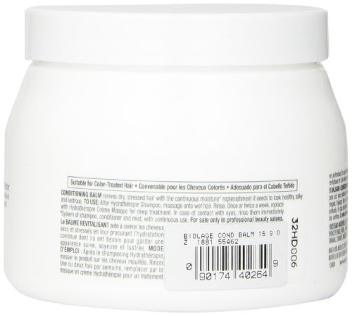 Biolage hydrotherapy conditioning balm is infused with aloe vera and algae to help nourish and restore hairs moisture balance, revealing its natural softness and shine.