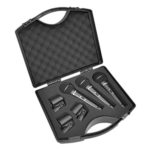 The Pyle PDMICKT80 microphone system was designed with the professional in mind. Kit comes with (3) cardioid vocal microphones with XLR connectors and (3) mic clips -- and it's all packed in this convenient travel case. Microphone features include moving coil, dynamic uni-directional elements along with impressive frequency response rates and microphone sensitivity. High signal output gives your voice a clean cut-through and also provides quality performance and reliability when used as an instrument microphone. Perfect for the garage, studio or live performances.
