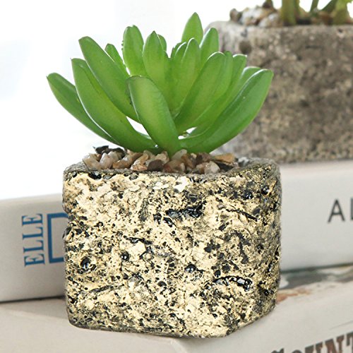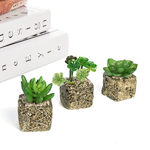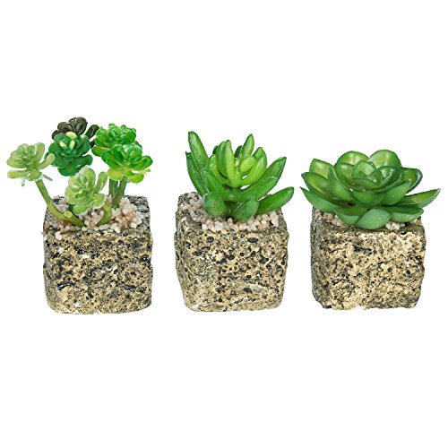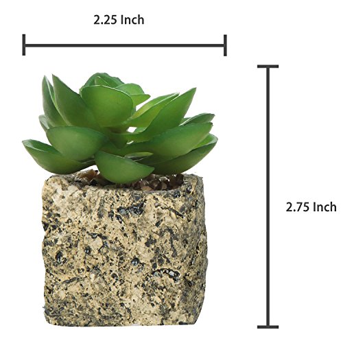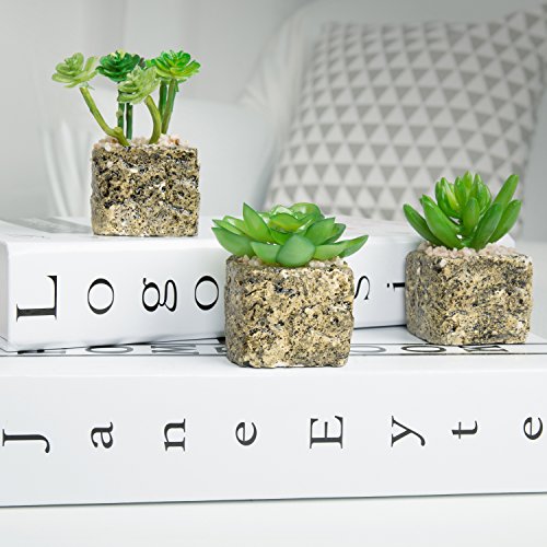 Set of 3 Decorative Green Realistic Mini Succulent Plants w/ Brown Stone Pots - MyGift