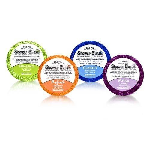 Variety pack of Four (4) Shower bursts. One of each of the following pure essential oil scents: Relax, Clarity, Refresh and Healing.