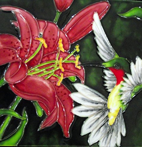 Continental Art Center BD-2324 Art Tile 8"X8" Art Tile-Hummingbird & Lily