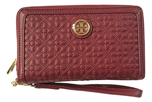 -. Brand : Tory Burch -. Color : French Gray and New Ivory -. Department : Womens -. Feature : Quilted and stitched leather wristlet wallet with polished golden tone hardware / Zip around closure secures an interior with a slip pocket on the right / Interior also offers 6 card slots and a slot on the left that could be used for smaller smartphones / Removable wristlet has a drop of approximately 5.5 inches / Measures approximately 6.5 inches (L) x 3.75 inches (H) x 1 inch (D) and has an MSRP of $165.00 -. Model : 11169018 -. ProductGroup : Shoes -. ProductTypeName : HANDBAG -. Title : Tory Burch Bryant Quilted Leather Smartphone Wristlet