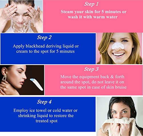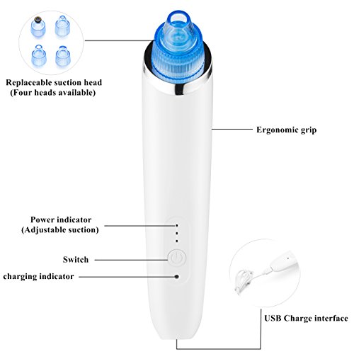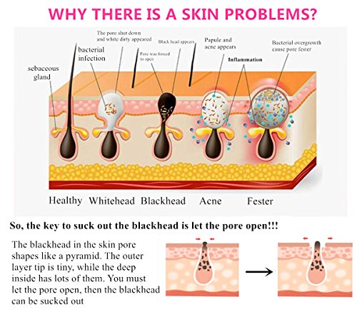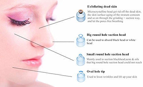 - ❤YOUR SKIN PROBLEMS SPECIALIST: Blackhead, whitehead, comedo, acne, coarse pore, strawberry nose, dark skin, crow's feet all these troubles get away, four replacement suction heads, deal with all different kind of skin problems, not only can purify pore but also can peel and exfoliate the facial skin, or give you a face massage