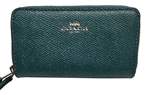 Product DescriptionCoach Crossgrain Leather Glitter Mini Double Zip Coin Card Case F15153 Dark Teal0