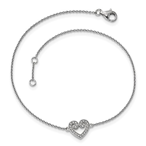 ICECARATS DESIGNER JEWELRY 925 STERLING SILVER CUBIC ZIRCONIA CZ HEART ANKLET FOR WOMEN ANKLE BEACH CHAIN BRACELET 1 INCH ADJUSTABLE CHAIN PLUS SIZE EXTENDER